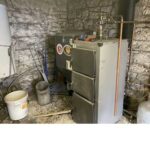 WC je splachovací, koupelna se sprchovým koutem, umyvadlo. Vybavení kuchyně je s linkou, elektrický sporák, vytápění je ústřední, kotel na pevná paliva, teplá voda je z boileru. Schody jsou betonové s dlažbou. Dispozičně jde o byt 4+kk. Stáří objektu odhaduji na nejméně 200 roků.