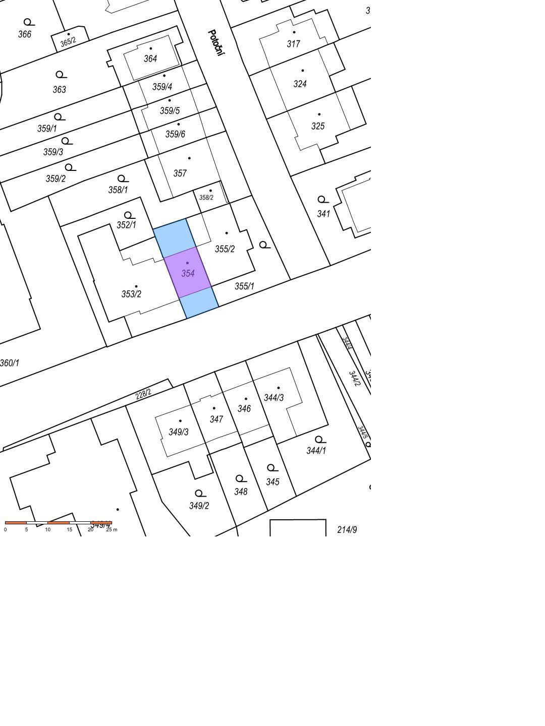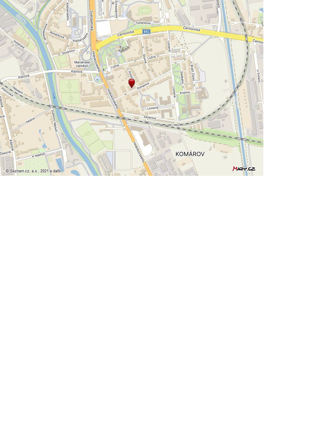 Dražba spoluvlastnického podílu o velikosti id. 5/24 – Objekt k bydlení: Brno, Komárov, Pompova č.p. 326, č.o. 7, s pozemky p.č.354, katastrální území Komárov, část obce Komárov, obec Brno, okres Brno – město, kraj Jihomoravský, se nachází východně od Mariánského náměstí, nedaleko (cca 250 m) od kostela Sv. Jiljí. v ulici Pompova. Objekt je situován mimo hlavní komunikaci, v jednosměrné ulici, vede tudy cyklostezka, je zde možné podélné parkovací stání před domem. V domě jsou umístěny dvě bytové jednotky, jedna o velikosti 2+kk a druhá o velikosti 4+kk. Dům je podsklepen, v 1.PP se nachází ve východní části garáž, v západní části půdorysu jsou sklady a kotelna. Dům má dvě nadzemní podlaží, zastřešení sedlovou střechou s vikýřem v zahradní rovině, směrem do ulice jsou umístěna střešní okna, která osvětlují podkrovní prostory. Orientace hřebene střechy je rovnoběžná s ulicí, V- Z. Dům je zděný. Zastavěná plocha domu je 80 m2, užitná započitatelná plocha 140 m2. Vstupní dveře jsou přístupné po chodníku, brankou v oplocení a přes předzahrádku k domu. Dále je možný vjezd ke garáži do 1.NP po rampové skloněné ploše. Do ulice jsou orientovaná okna v 1.NP a 2.NP, včetně okna ze schodišťového prostoru, směrem do dvora či zahrady je ve východní části půdorysu vikýř.V rodinném domě je proveden rozvod el. energie, vodovodu, kanalizace a plynu. Ve stavbě je kotel na plyn, otopná tělesa radiátory. Ohřev vody el. bojlerem nebo plynovým kotlem.